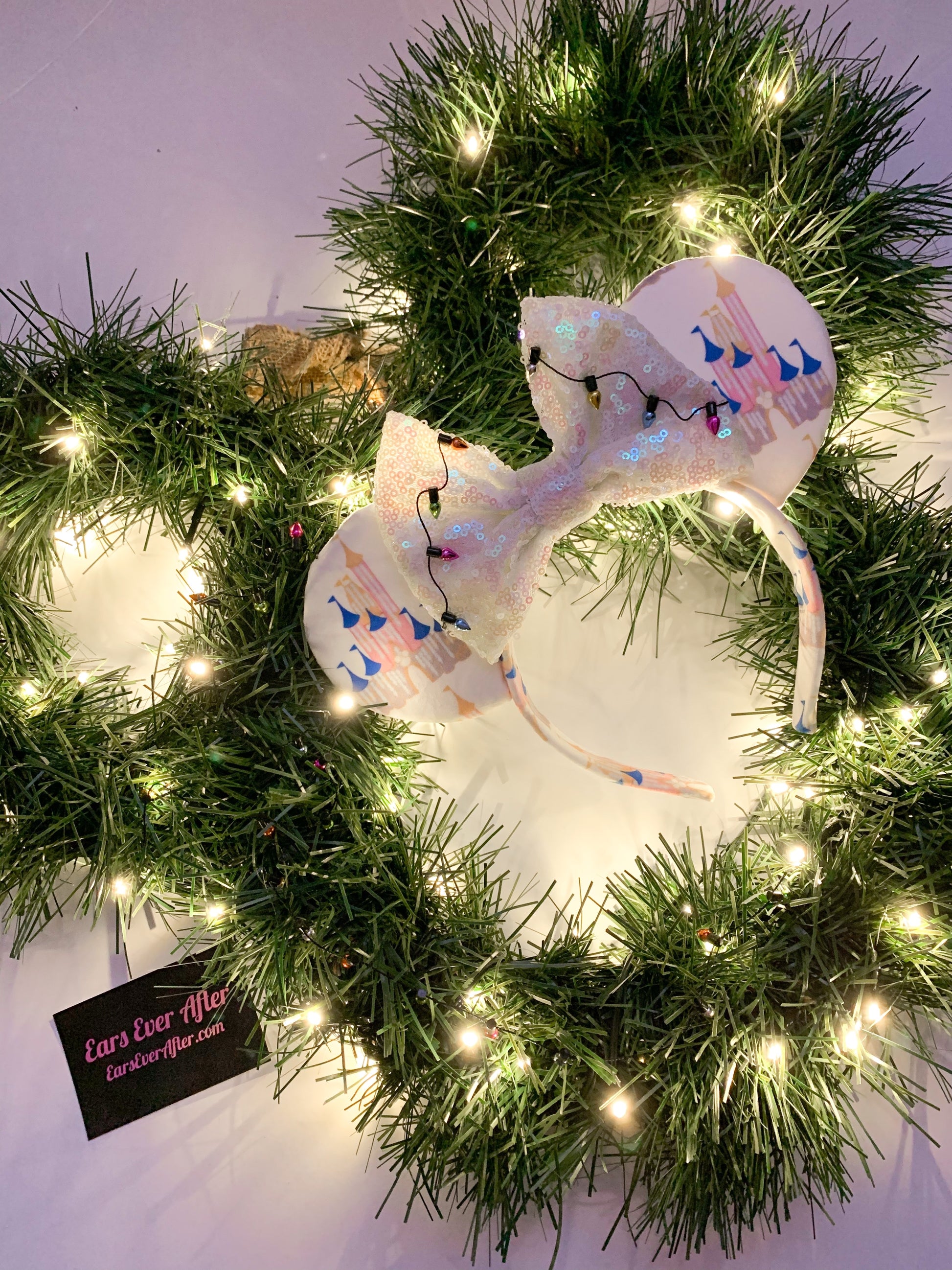 These Christmas Velvet Dream Lights Castle Ears are perfect for a day in the Disney Parks at Christmas time. For attending Mickeys Very Merry party and meeting Mickey and Minnie Mouse, Donald and Daisy Duck.They are also great for celebrating at home and bringing the Disney Christmas magic into everyday.