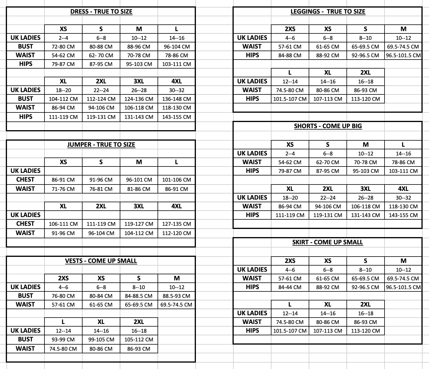 - Short style runs big, please check sizing in drop down menu to ensure you choose the correct size. Length is measured from the centre top of the waistband to the bottom of the garment.