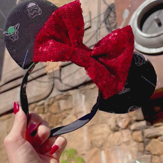 These Galaxy Beyond Ears are ideal for any Disney-inspired occasion, be it a trip to the parks and Galaxy's Edge riding Rise of the resistance and Smugglers run, a meet with Star Wars characters BB8, Storm Troopers and Grogu, or simply bringing a touch of Disney magic into daily life. Made by Ears Ever After.