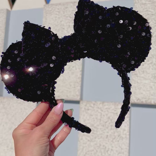 These Little Black Sparkle Luxury Sequin Ears are ideal for any Disney-inspired occasion, be it a trip to the Disney Parks, a meet with characters with all the sparkles, or simply bringing a touch of Disney magic into daily life. Made by Ears Ever After.