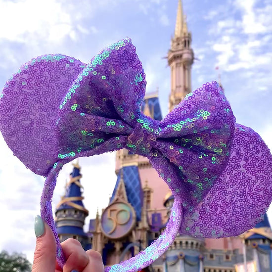 These Purple Iridescent Sequin Ears are ideal for any Disney-inspired occasion, be it a trip to the Disney Parks, a meet with Minnie and Mickey Mouse, or simply bringing a touch of Disney magic into daily life. Made by Ears Ever After.