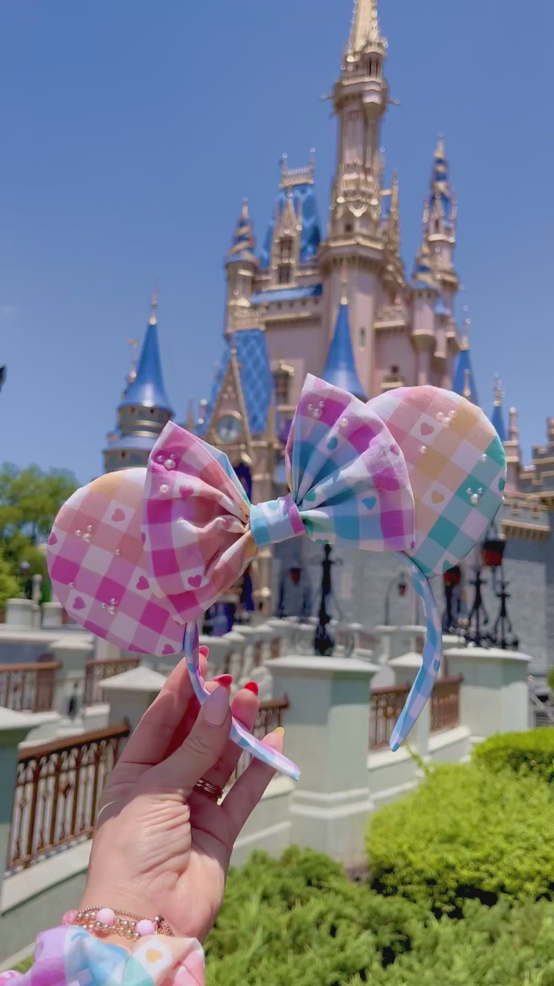 These Rainbow Gingham Pearl Ears are ideal for any Disney-inspired occasion, be it a trip to the Disney Parks, a meet with characters with all the sparkles, or simply bringing a touch of Disney magic into daily life. Made by Ears Ever After.
