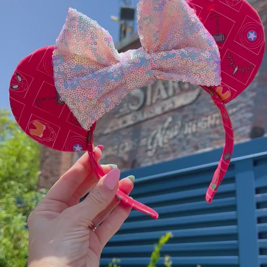 These Super Hero Ears are ideal for any Disney-inspired occasion, be it a trip to the Disney Parks Avengers Campus, a meet with Marvel characters Iron Man, Hulk, Thor, Black Panther, Captain America, Spiderman and more, or simply bringing a touch of Disney magic into daily life. Made by Ears Ever After.
