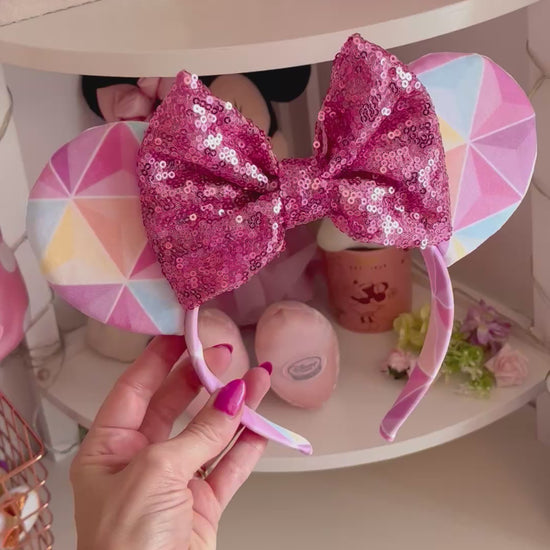 These Velvet Pastel Future Park Ears are ideal for any Disney-inspired occasion, be it a trip to the Disney Parks Epcot riding Spaceship Earth, a meet with characters, or simply bringing a touch of Disney magic into daily life. Made by Ears Ever After.