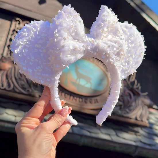 These White Sparkle Luxury Sequin Ears are ideal for any Disney-inspired occasion, be it a trip to the Disney Parks, a meet with characters such as Elsa with all the sparkles, or simply bringing a touch of Disney magic into daily life. Made by Ears Ever After.